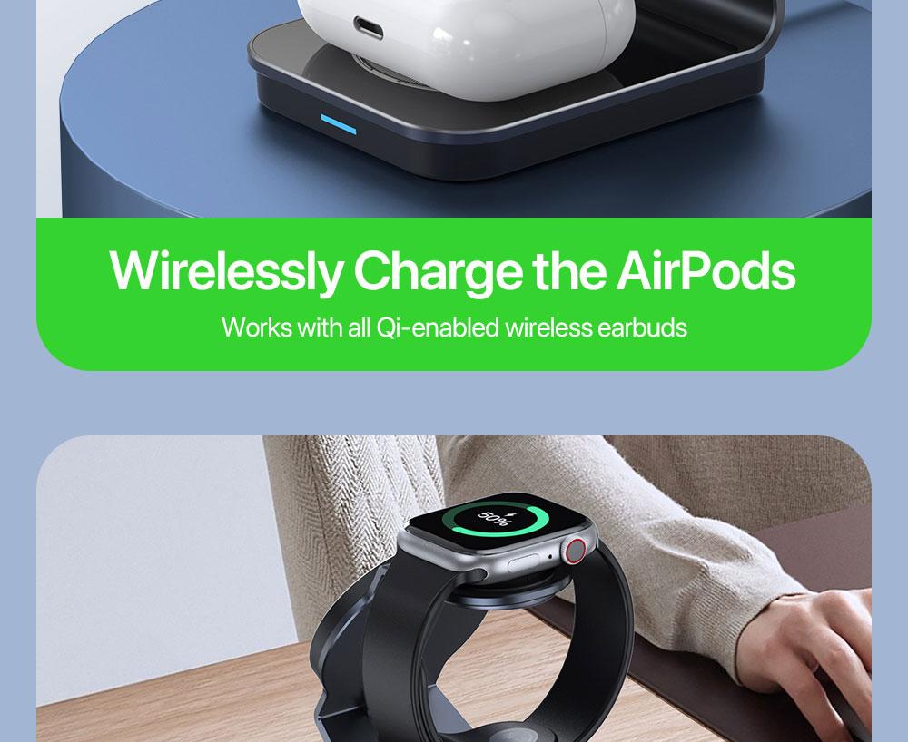 3-in-1 Magnetic Wireless Charger: This charger consists of 3 modules, which can charge your iPhone, it provides real 15W magnetic wireless charging for iPhone 12-15 series as long as iPhone 13-15 series has been upgraded to iOS17.2 or later version, or iPhone 12 series has been upgraded to iOS17.4 or later version. Besides, it is compatible with other Qi-enabled phones and earbuds.