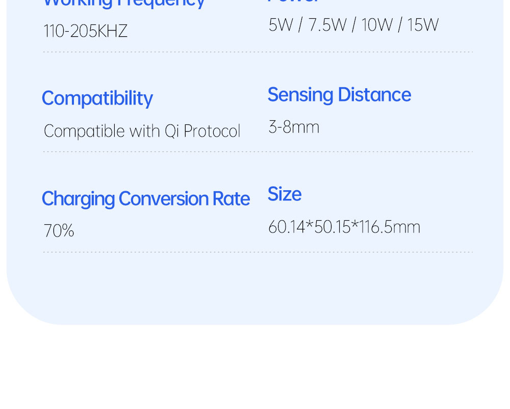 Safe Charging: The built-in safety chip can prevent the charger from getting hot during the charging process. If the working current, voltage is too high, a short circuit occurs, or metal foreign objects are detected on the charger, the charging will automatically stop immediately. When fully charged, the charger automatically stops working, so you can safely let it charge your phone whether indoors or in the car.